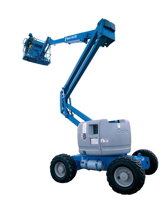 Marca: Genie Modelo: Z45-22 Diesel Potencia: 26 HP. Tracción: 4 X 4 Altura máxima de trabajo: 15,54 m. Altura máxima de plataforma: 13.72 m. Altura máxima en posición de almacenaje: 2 m. Anchura: 1.8 m. Distancia entre ejes: 1,9 m. Capacidad máxima de carga: 227 Kg. Peso: 6.700 Kg.